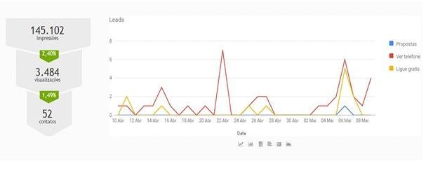 de busca, página da imobiliária, ligue grátis, exibir telefone, propostas enviadas.