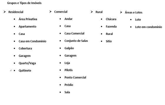imóveis, tais como: