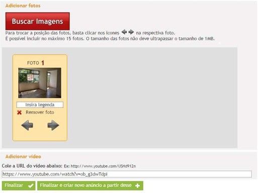 Tela de criação do anúncio: