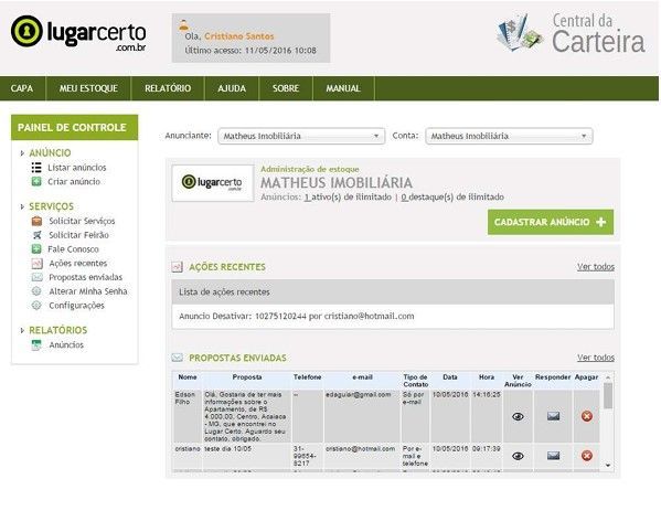 Acessando e utilizando a sua Carteira de Imóveis do Lugar Certo.