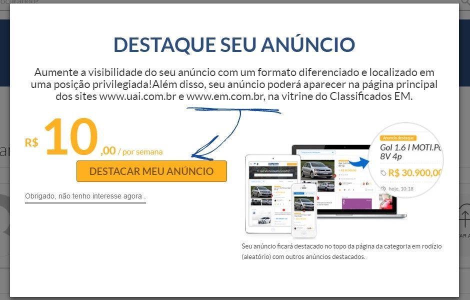 *Importante: Anúncios que não possuem fotos e anúncios da categoria "Adultos", não podem ser destacados.