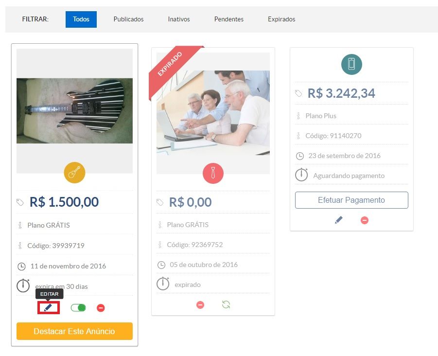 Após editar o anúncio, o mesmo será atualizado na mesma hora em nosso site.
