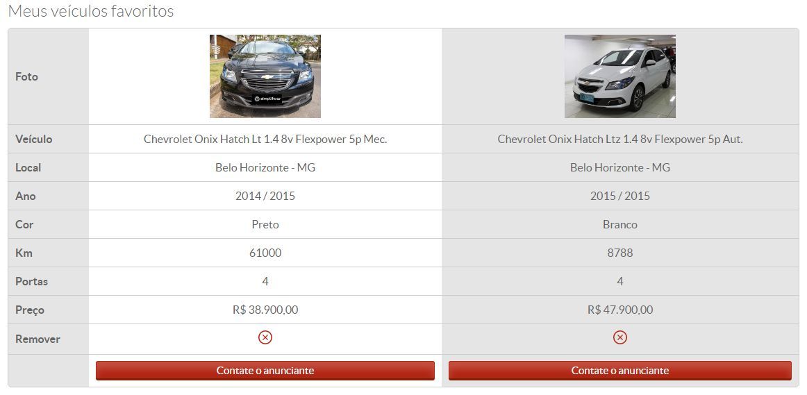 Caso ao realizar a busca por veículos no Vrum você encontre e tenha interesse em um ou mais veículos, você pode não só marcar os veículos como os seus favoritos, como também pode compará-los, vendo assim as principais características de cada um.