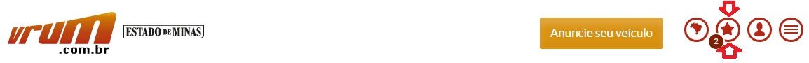 Repare que após marcar um veículo como favorito, será mostrado no topo da página do lado direito, quantos veículos você já favoritou.