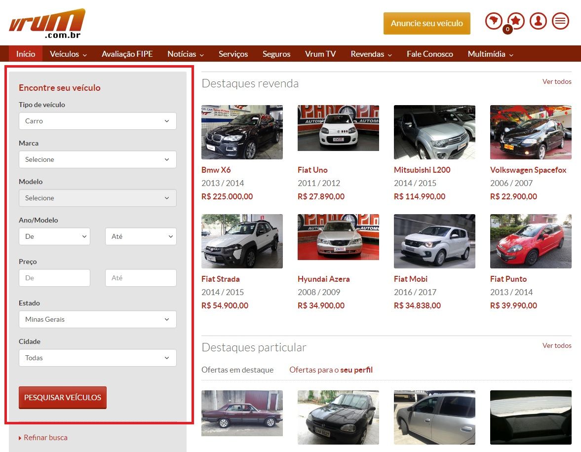 No Vrum é possível realizar vários tipos de buscas, é bem simples ;)