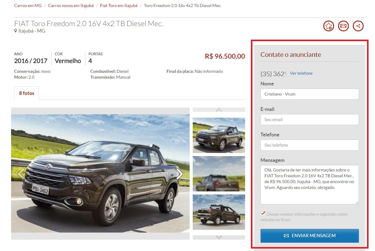 Para entrar em contato com a pessoa responsável pelo veículo anunciado no Vrum, é simples.