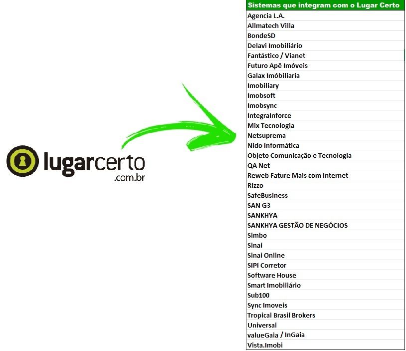 Se você possui em sua imobiliária um sistema que integre os seus imóveis com outros portais e você queira integrar também com o Lugar Certo, nós integramos com vários sistemas integradores.